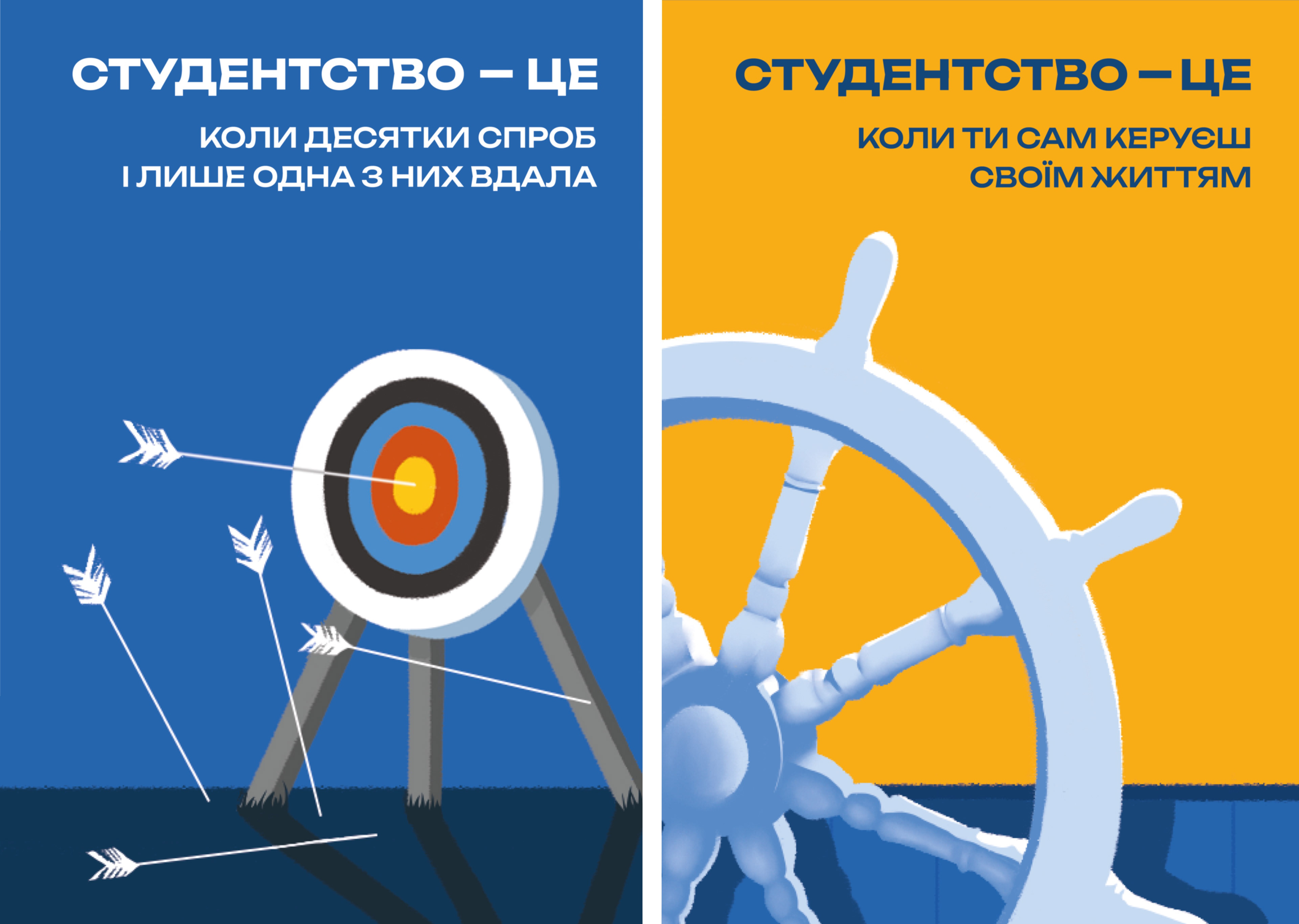 Student Life — Poster Series A motivational poster collection created for a college campaign about student life and growth. Each illustration visualizes a key aspect of learning — persistence, independence, challenge, and ambition — through strong visual metaphors.